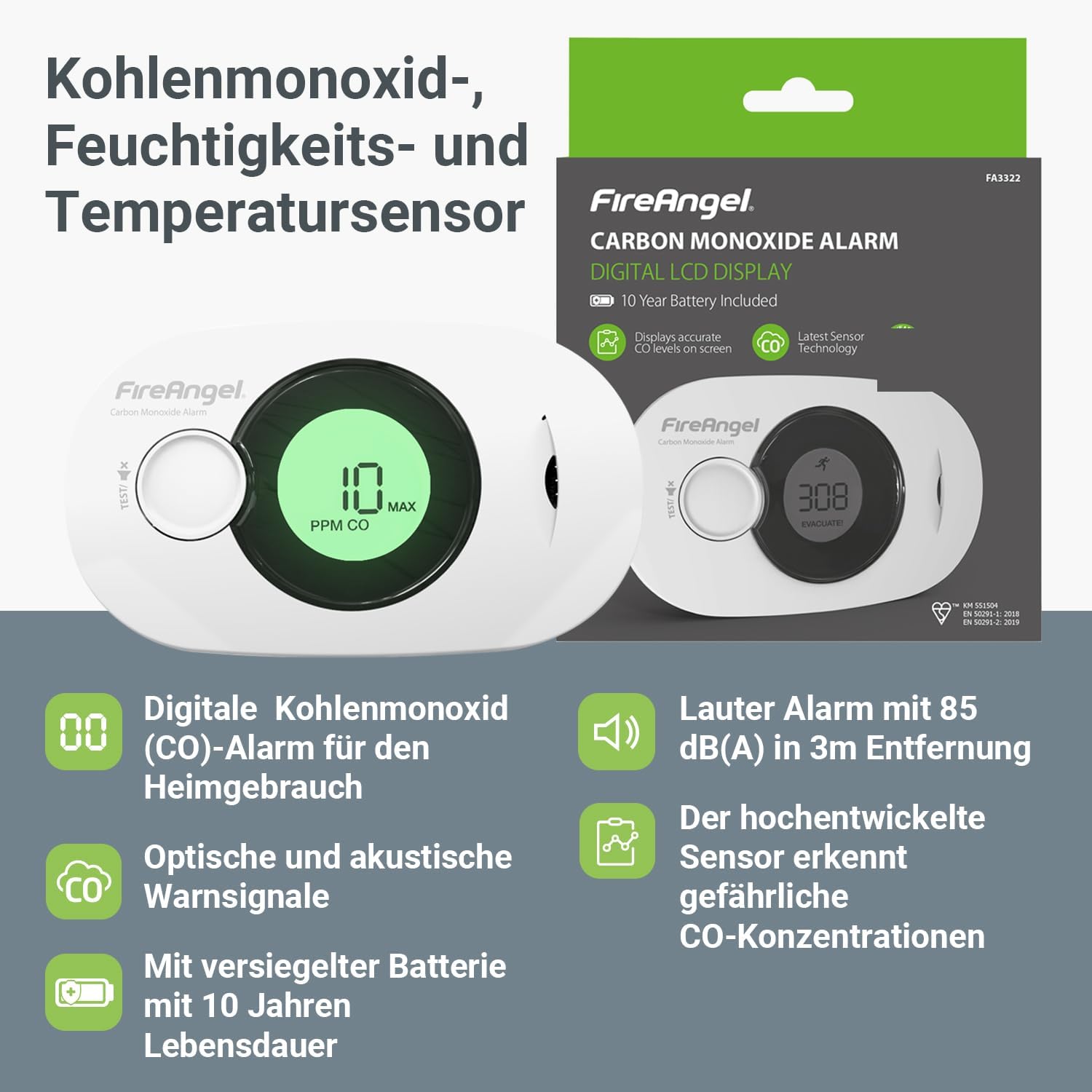 Der FA3322 warnt mit einem lauten 85 dB Alarm und eignet sich ideal für Schlafzimmer, Wohnräume und Flure. Dank Batteriebetrieb ist die Installation schnell und unkompliziert.